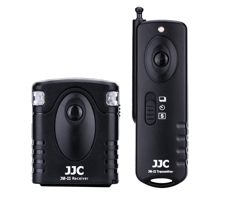 Беспроводной спусковой пульт для камер Nikon. JM-M (II) может работать и в проводном, и в беспроводном режиме. В проводном вы просто соединяете приемник с камерой по кабелю, не используя передатчик. Приемник оснащен собственной спусковой кнопкой: полунажатие активирует автофокус, полное нажатие спускает затвор.  В беспроводном режиме пульт работает в частотном диапазоне 433 МГц на расстоянии до 30 метров. Выбор из 16 каналов позволяет нескольким фотографам работать рядом, не мешая друг другу. Приемник можно установить в горячий или холодный башмак, либо на кронштейн с винтом 1/4"-20.